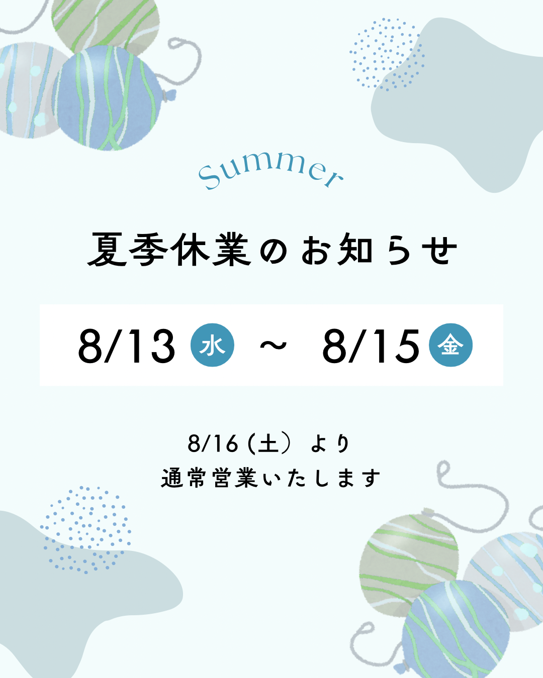 🍉夏季休業のお知らせ🎐