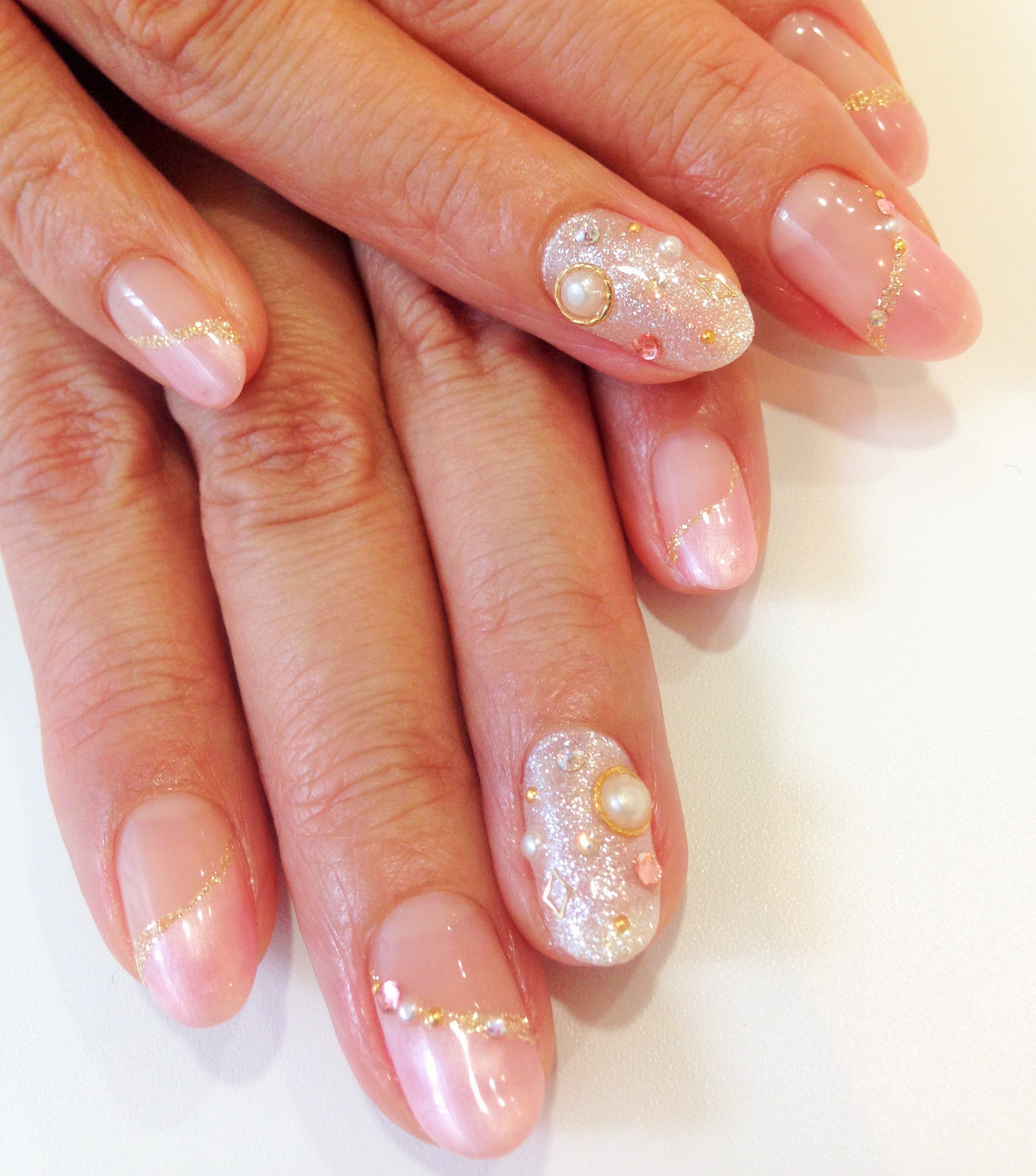たくさんのストーンビジューアートも、派手になりすぎず、上品な仕上がりでした♪